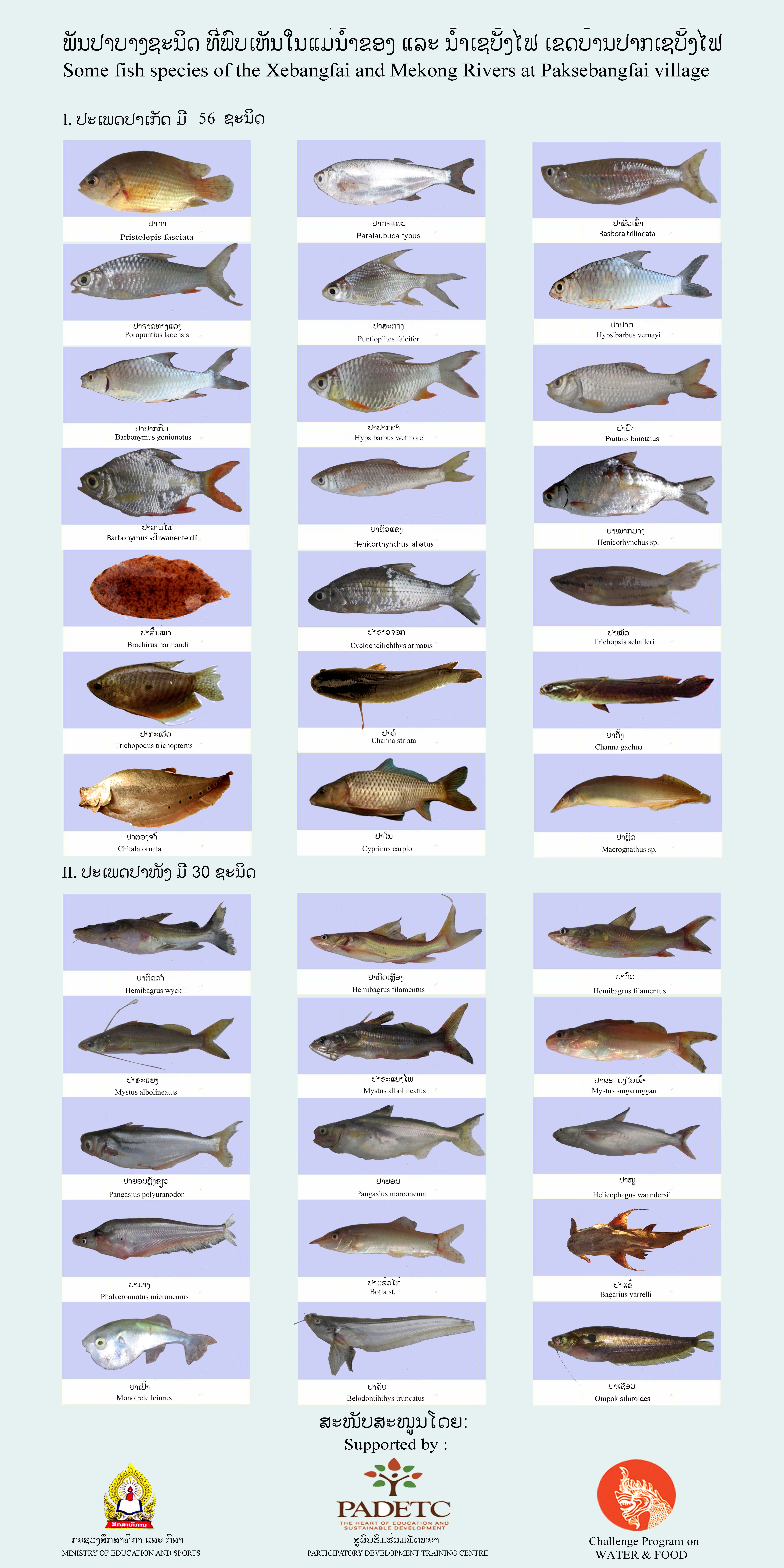 - ຊະນິດພັນປາບາງຊະນິດທີ່ພົບເຫັນ ທີ່ບ້ານປາເຊບັ້ງໄຟ, ເມືອງໄຊບູລີ, ແຂວງສະຫວັນນະເຂດ